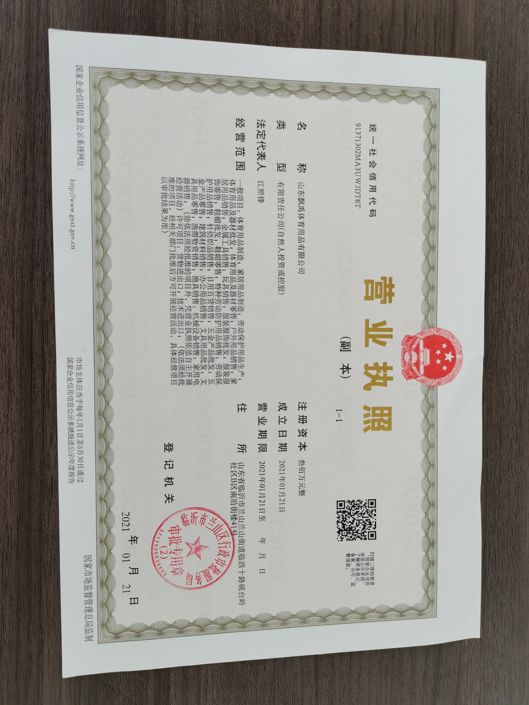 Registered address : The second house from the east in the second row of the villa complex, Yantailing Community, Linxi Tenth Road, Lanshan Subdistrict, Lanshan District, Linyi City, Shandong Province. Linyi Shandong China